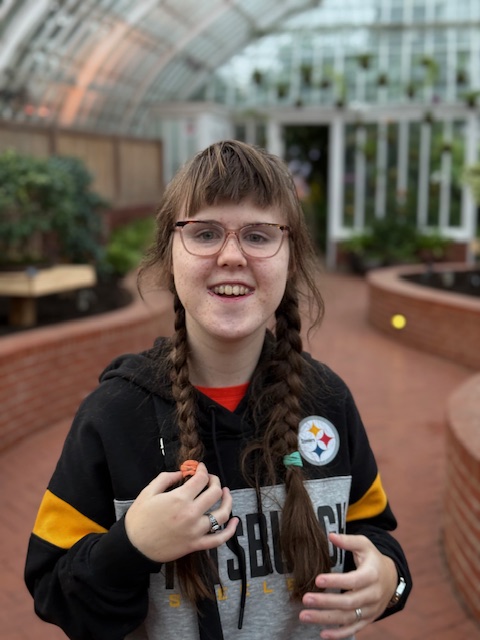 Last Sunday, Carl took the girls out of the house so that I could have everything quiet for an interview. He took them to Phipps conservatory to see the new orchid display. They had a great time, especially seeing Godzilla battling giant spotted lantern flies. Sarah also delighted in reenacting the moment when the jeep went into the ditch the night before.